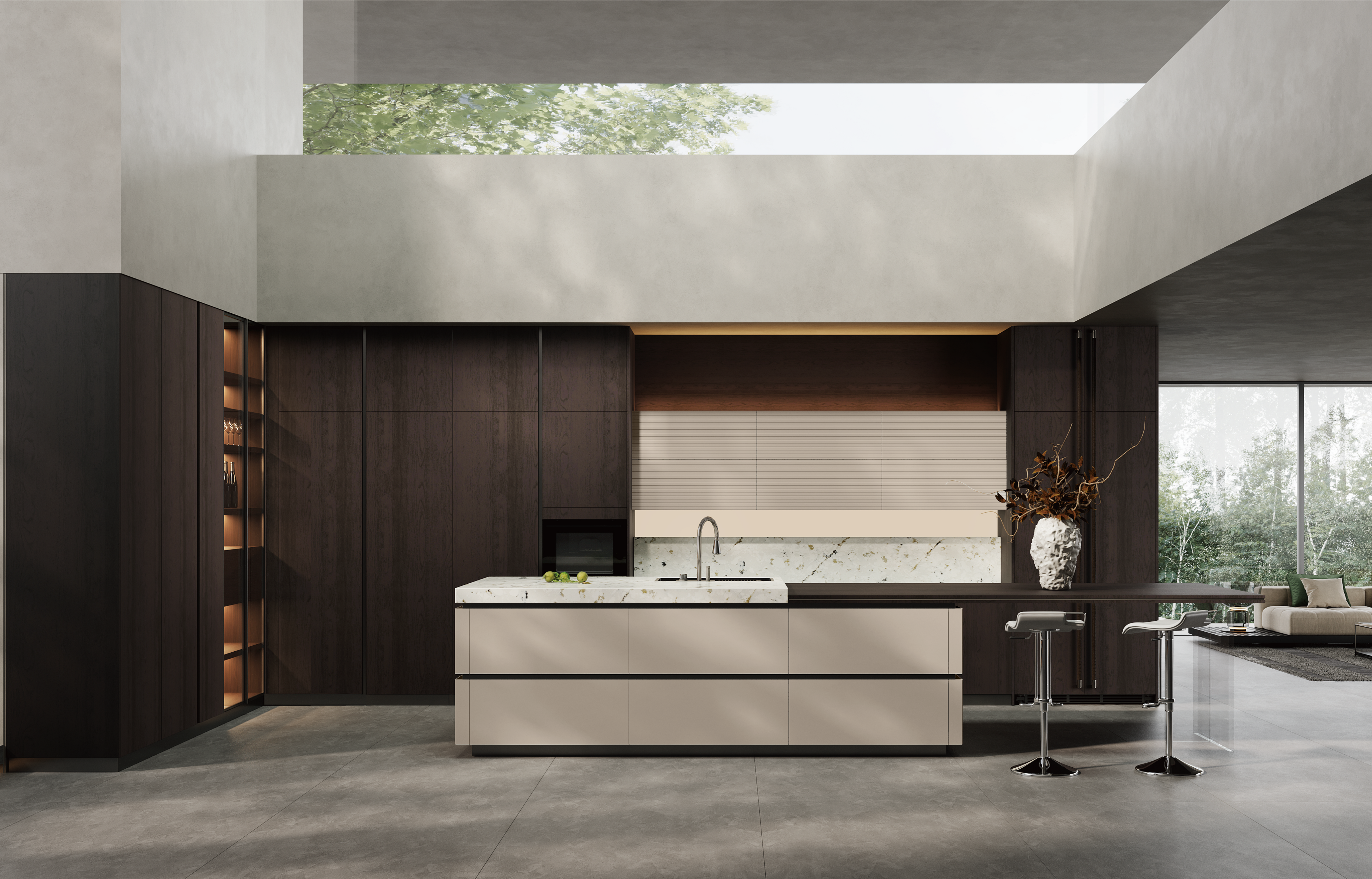 通过z6com·尊龙厨柜量体裁柜,定制出适合主厨下厨的烹饪区和洗涤区的舒适高度。